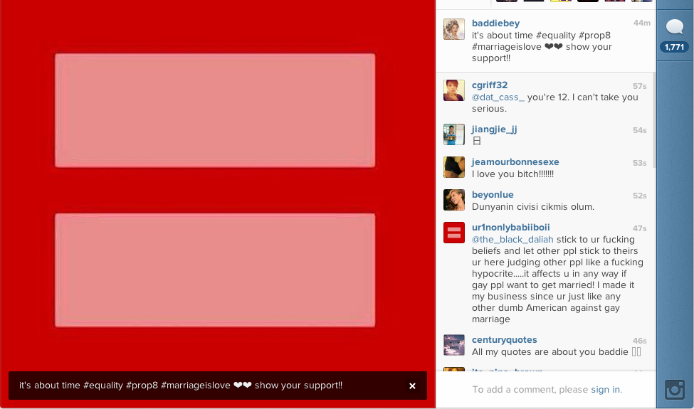 If Jay can be for gay marriage, why cant she? I remember back in the day when she was quizzed about homosexuality and even then she said she absolutly stands for equality and acknowledges a lot of her fans are gay. If she didnt say anything people would slam her for not acknowledging her fans. She cant win. All she did was post a picture in support of it on instagram like many others are doing.