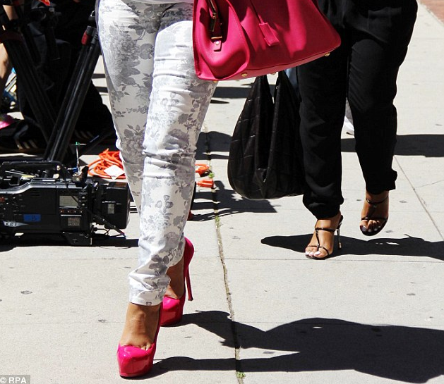 Eww!!! She looks like a stuffed sausage. those shoes look too small and uncomfortable and I am cringing looking at that belly button rubbing into her top…