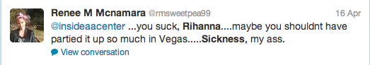 The nay on rih’s side. We know she is a hard worker. Why are the HIVE mad she is sick? You do not even like her or buy her her s***. You are REALLY ANGRY BECAUSE SHE SHUT BEYONCE COMEBACK FOR 2013 ANS THIS IS YOUR WAY OF LASHING OUT.