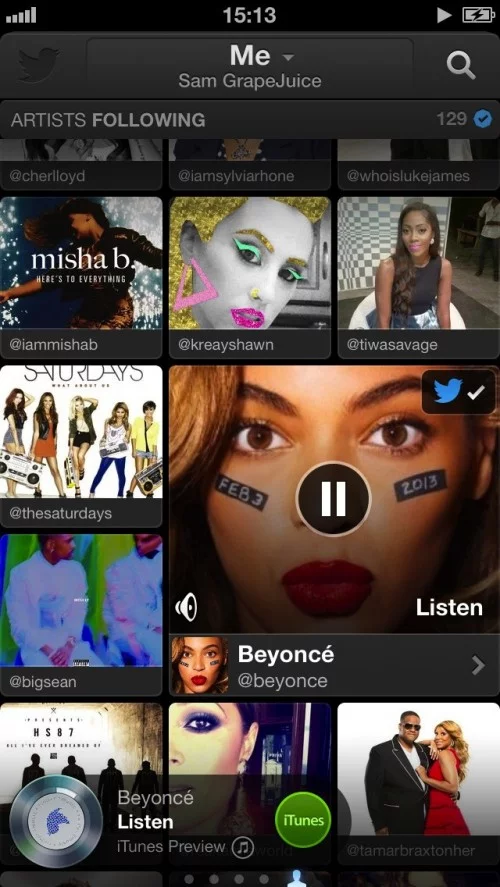 Touted as a music discovery tool, the app allows users to discover music that is trending on the social network via the new platform as well as play tracks within the app with the tap of a button — thanks to integration with iTunes (previews), as well as Spotify and Rdio (full songs).