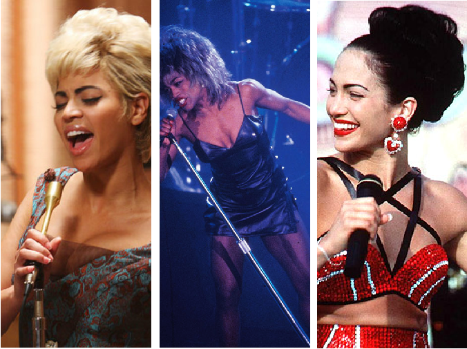 (From left to right: Beyonce as Etta James, Angela Bassett as Tina Turner, Jennifer Lopez as Selena)