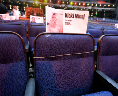 Sat in the front row- and one seat away from Chris Brown– will be ‘Va Va Voom’ Rapper Nicki Minaj with one empty seat to their respective right hand sides.