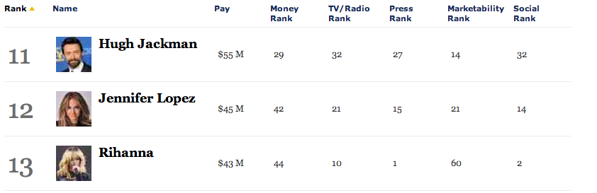 At least Rihanna made that list as bad as shes supposed to be many would have to think that Her name would never be connected with a Forbes that list since they are looking for people with talent and many say she don’t have any then explain why Her name can be seen on Forbes,Hellllllo.