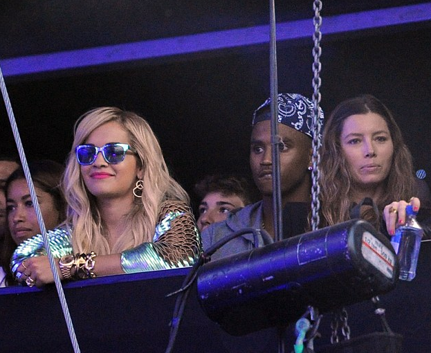 Snapped alongside actress Jessica Biel as they enjoyed Justin Timberlake‘s set at the event, the pair were snapped shortly after ‘Crazy Kids‘ belle Ke$ha rocked the event’s audience with a set of her very own, and one day before Rita does the same- performing cuts from her #1 album ‘ORA‘.