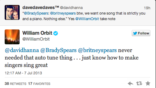 Responsible for creating many an Adult Contemporary hit, Orbit said of his work on Britney’s eighth studio release: