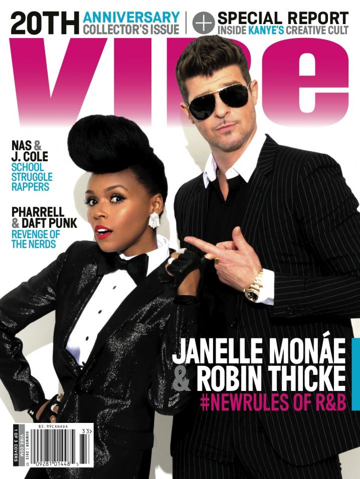 Two of modern R&B’s most prized acts, Janelle Monae and Robin Thicke, get the party started in the 20th anniversary issue of VIBE magazine.