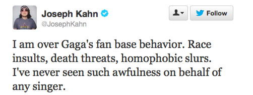 Gaga’s Twitter plea came just a day after famed video director Joseph Kahn took to the social media outlet to slam Little Monsters for their attacks on him after he praised Katy Perry‘s latest smash hit ‘Roar’. Said post gained even further attention after Hilton retweeted it.