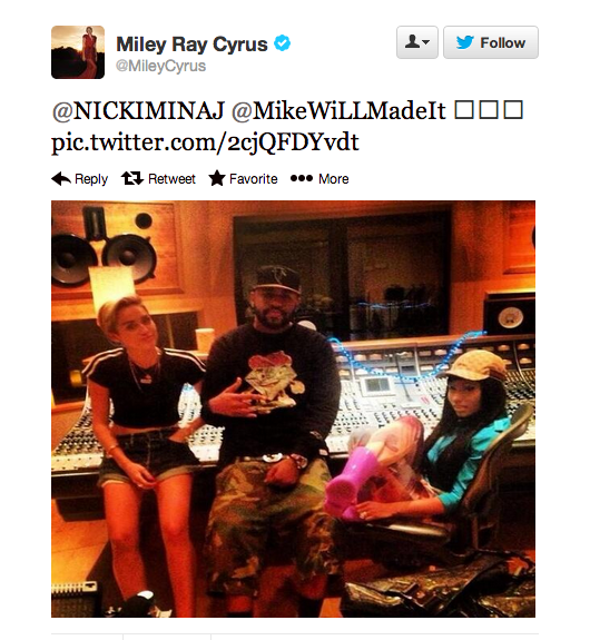 Today, in helping Miley Cyrus boost momentum for her forthcoming release, the ‘Blow Your Mind‘ belle joined the ‘We Can’t Stop’ singer in a studio session orchestrated by ‘Pour It Up’ producer Mike Will!