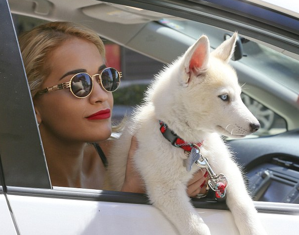 In town to continue work on her brand new album, the entertainer was snapped walking her blued eyed pooch sans her boyfriend Calvin Harris, with whom reports claim she reportedly shares a $7 million home with in the Hollywood Hills.
