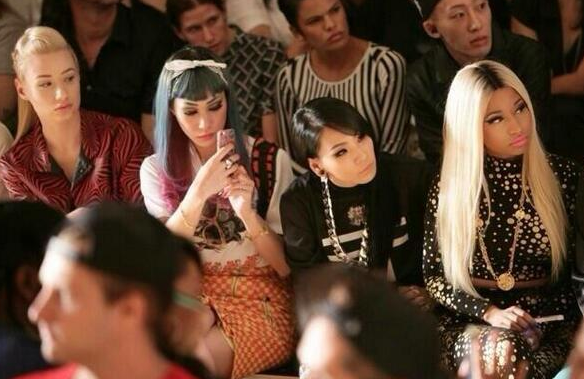 After refusing to begin the show until Nicki Minaj’s arrival , designer Jeremy Scott found his fashions cast upon with many a creative eye, Rap Princess Iggy Azalea arrived at the show to join Minaj in the front row.