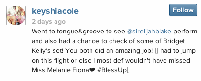 Snapped alongside Blake and his longtime mentor Troy Taylor, reliable word tells us that Keyshia touched down in Atlanta and spent no more than an hour in the city, just so she could enjoy Elijah’s set on the Melania Fiona/ Bridget Kelly led ‘EOS‘ tour showing.
