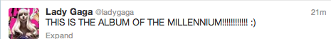 Pop icon Lady GaGa has hailed her new album ‘ARTPOP’ the album of the millennium today, sharing her grand view on the piece during a Twitter Q&A session set up to promote the piece!