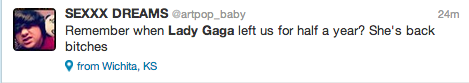 She was joking! Look at her twitterpage and then you will see.. Pfff i’m not a Gaga-fan, but you must not trust everything that anyone says.