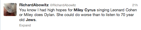 All the more reason for Miley to listen to those “old white Jewish men”. Maybe she’d finally win a Grammy.