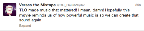 The movie was very well done. Its gonna be played multiple times like “The Jacksons” & “Whats Love Got To Do With It?”. Instant classic! Lil Mama played the mess out of Left Eye!!!! She sould get nominated for something!!!!! Anyways, I miss those days of music were we had so much to choose from. Now we got Miley Cyrus & stupid pop b******… *YAWNNN*