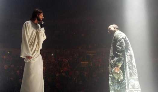 Currently facing mixed reviews for reasons you’ll understand when you meet us below, the first showing of the tour brought with it a set list that celebrated its supporting album of the same name, and an appearance by a man impersonating Jesus Christ.