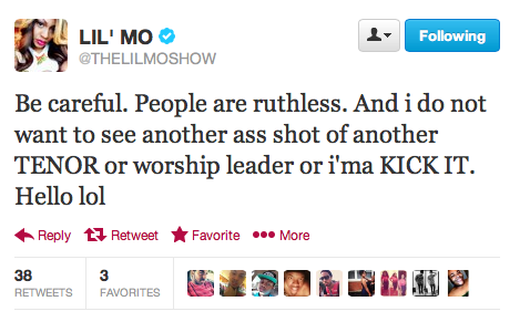 If he is really Lil’ Mo’s friend, she would not be tweeting all those messages that screamed for attention…she made the story bigger by her commentary…some friend this hoodrat is
