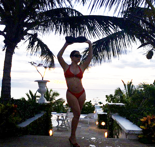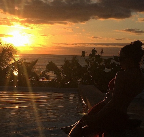 As ever, the diva is chronicling the trip on Instagram, posting the shots above and below with captions such as: “First listen after being pon de makeshift studio all night” and “Splash! Morning listening session”.