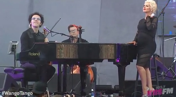 The still-svelte diva, whose daughter arrives in the Fall, took to the stage at Wango Tango last night with duo A Great Big World.