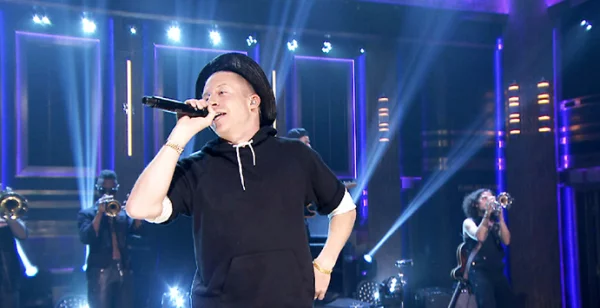 Macklemore made his merry way to’ The Tonight Show Starring Jimmy Fallon’ yesterday evening to perform his new single ‘Downtown’ with his collaborator Ryan Lewis.