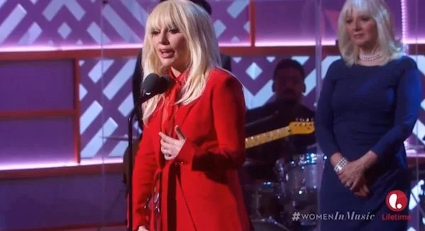 Before launching in to a rousing rendition of her Grammy nominated song ‘Till It Happens To You,’ Mother Monster was presented with the night’s most coveted award by her own mother Cynthia Germanotta.