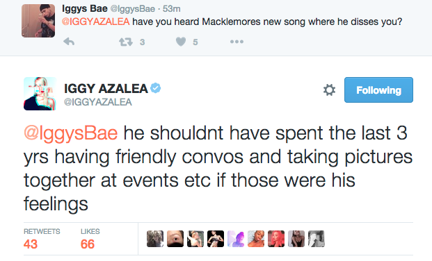F*** Macklemore and Iggy. Neither one of their no talented privileged asses gets any cool points from me.