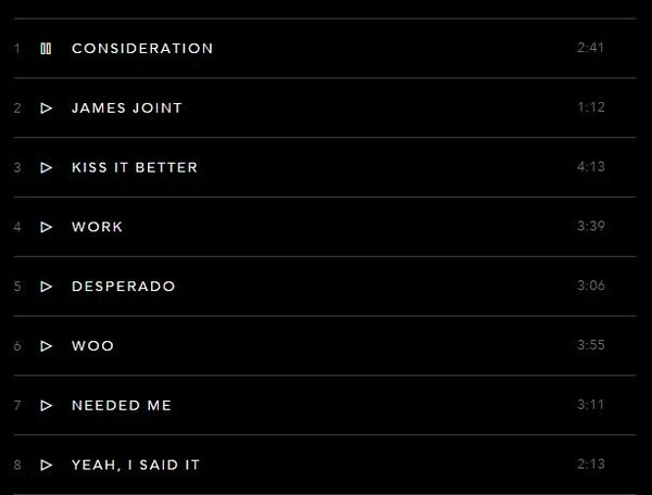 Regardless of the “journalism” by whoever runs this page – this may be “messy” but you don’t by chance think Rihanna and team did this on purpose to keep the buzz going after her single release? Funny how the track list “appears yet disappears” knowing people are hungry for her new music and screen cap the s*** out of everything.