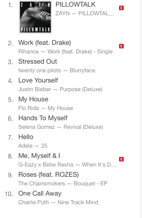 can just imagine sam refreshing the itunes chart every minute just waiting for the moment the zayn song topped work so he can post this pre-written report.