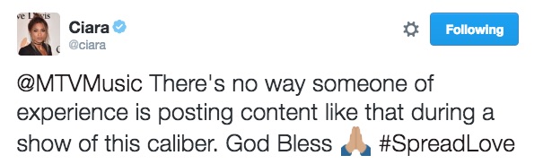Ciara’s lovely. Nice to know their beef is over with and MTV is shady as hell for doing this