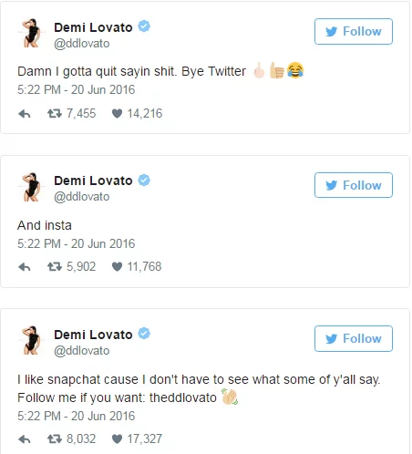 Demi leaving social media says otherwise