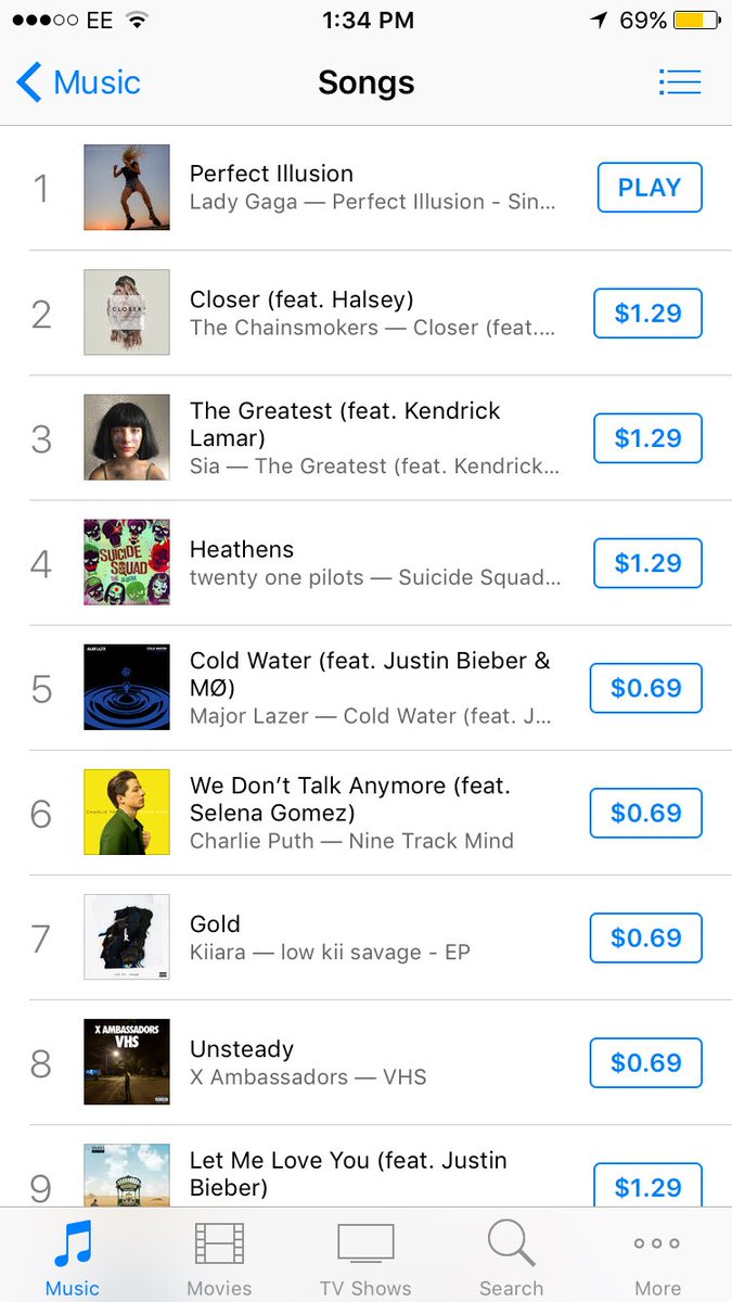 As at writing, the Mark Ronson, BloodPop, and Kevin Parker production occupies the top spot of iTunes US and UK.