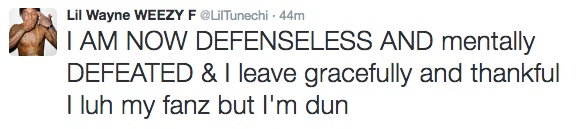 Yet, following another outburst this week, Weezy took to Twitter moments ago to throw the towel in.
