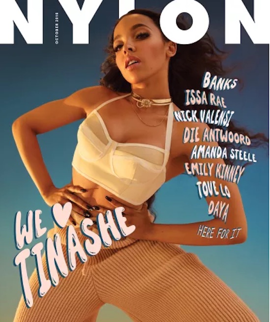 Tinashe cuts a striking figure a-front of NYLON magazine’s October issue.