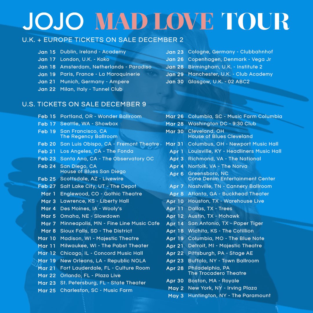 The jaunt is being erected in support of the 25-year-old’s long-awaited third album album ‘Mad Love.’ Released in October, the LP opened inside the top 5 of the Billboard 200 and has earned rave reviews.