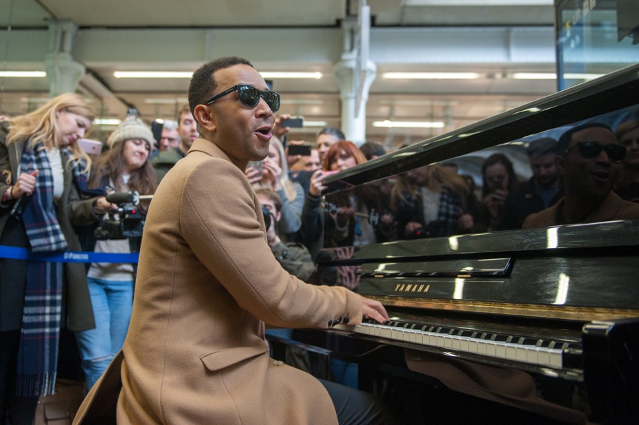 Aptly taking place on Piano Day 2017, the showing – which drew a crowd of hundreds – saw Legend rock out on the Elton John piano housed in the centre of the station.