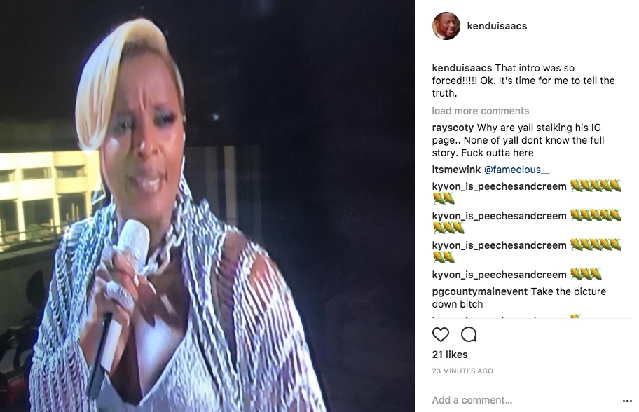 Mary J. Blige has just stepped off the stage at the 2017 BET Awards and delighted many with her performance. However, ex Kendu Isaacs is not impressed.