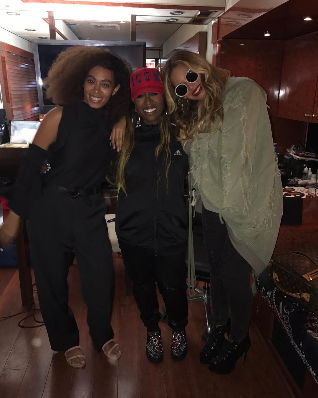Mrs Carter together with her Grammy winning sister Solange posed it up with Missy. Peep their pic above.