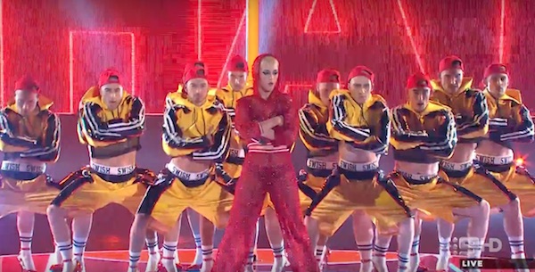 Backed by a troop of sassy dancers, Perry showed up and out to ‘Swish Swish’ – her collaboration with Nicki Minaj.