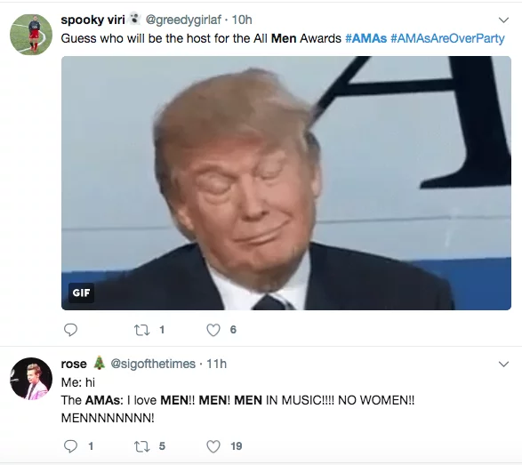 Basically getting mad at the AMAs is like people getting mad at the oscars for lack of diversity when the issue is really a lack of good movies with minorities in quality leading roles.