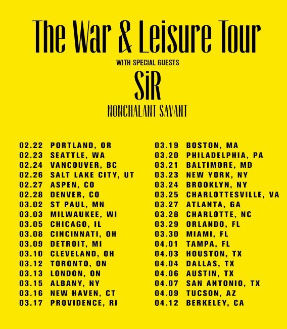 Set to kick off in 2018, the US trek will see the soulful singer play 34 dates (almost back-to-back) from February 22nd through to April 12th. Support is being provided by SiR and Nonchalant Savant.
