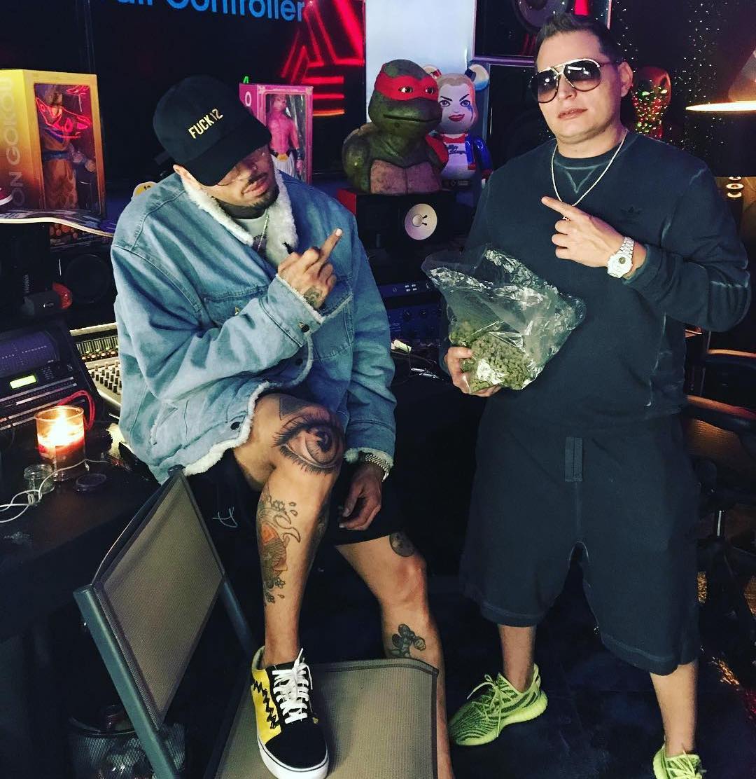 C. Breezy took to social media to share a snap of himself in the studio with producer Scott Storch – who also posted the pic.