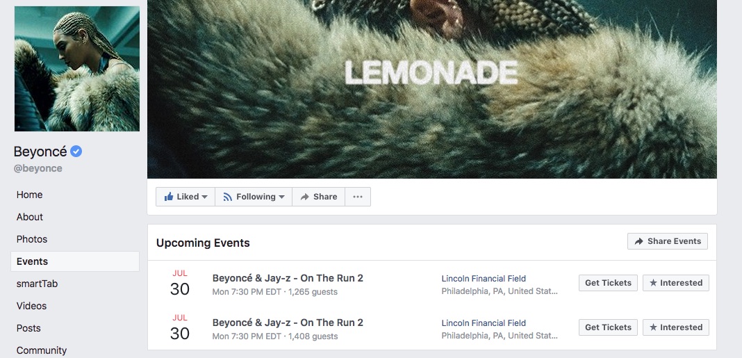 After much ado, the first announced date for the pair’s summer stadium trek -the title of which is ‘On The Run 2’ – spontaneously appeared on Bey’s Facebook page.
