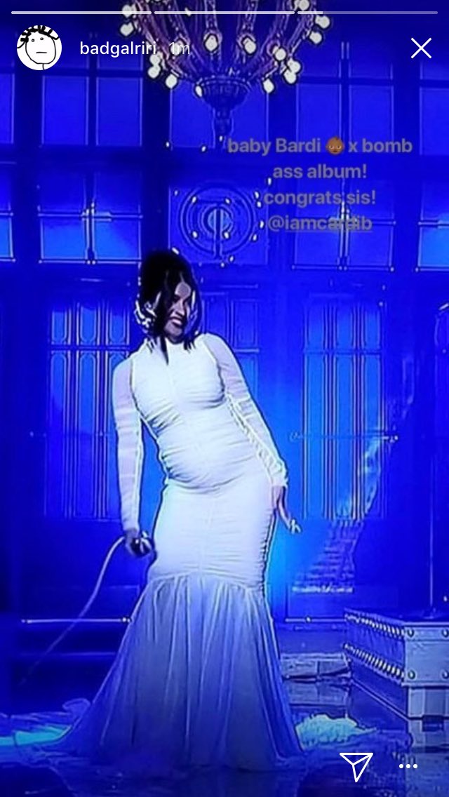 Taking to Instagram stories, Rih cheered Cardi (who she calls her “sis”) on for her LP’s arrival and news of her pregnancy: