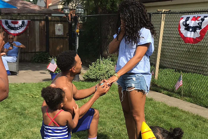 The big moment took place on Independence Day (July 4th) and was shared with the couple’s two-year-old daughter Kensli, who lovingly watch over her father’s shoulder.