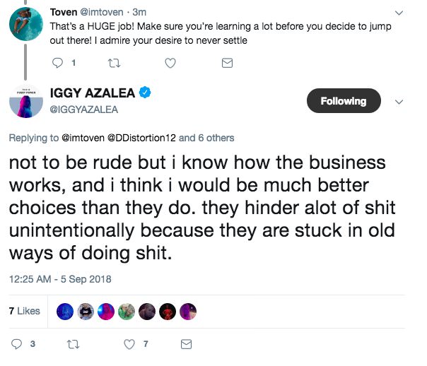 It’s radio & the industry that’s with the crap when it comes to Iggy…. She makes good records for radio….