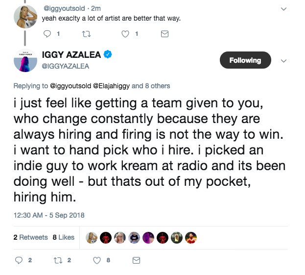 She is indeed correct nowadays. If u have the money just stay independent get a good manager withthe right connects for shows n hire a team do it independently. Records are not selling like before. people do change jobs every 6-12months so its down to you and your manager and you’re team to make money and make it happen thats why so many black artitsts are excelling coz they already always had that hustler mentality like QC Coack , n QP drake all them afro beats folks u can’t rely on the machine. its not wise.