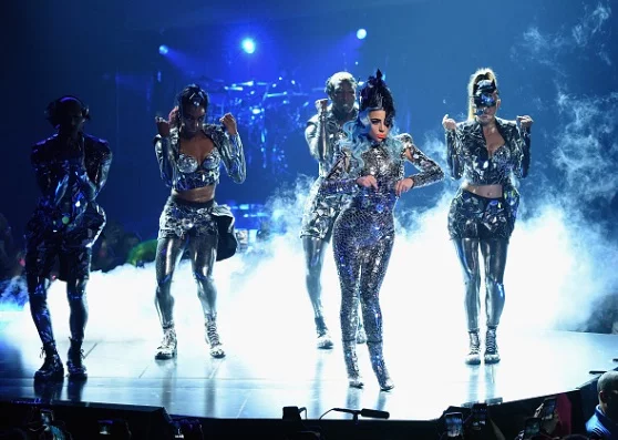 The stage looks busy.. but we know she work it out.. but the songs she choose. It’s telling. Mostly old songs. This must be fame monster 2.0 tour.. ..no shade but the costumes look like she has already done it before. Shiny metallic with color hair come on ..now don’t act like this is new