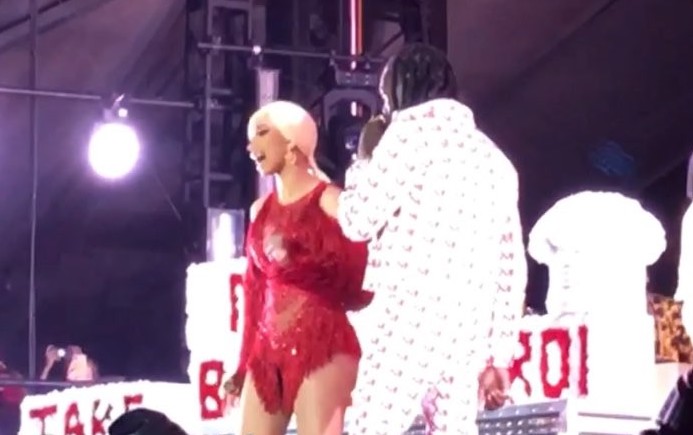 Tonight however he upped the ante. Because while Cardi was performing at the Rolling Loud Festival in Los Angeles, the MC crashed the stage (with flowers that read “Take Me Back Cardi”) and said: