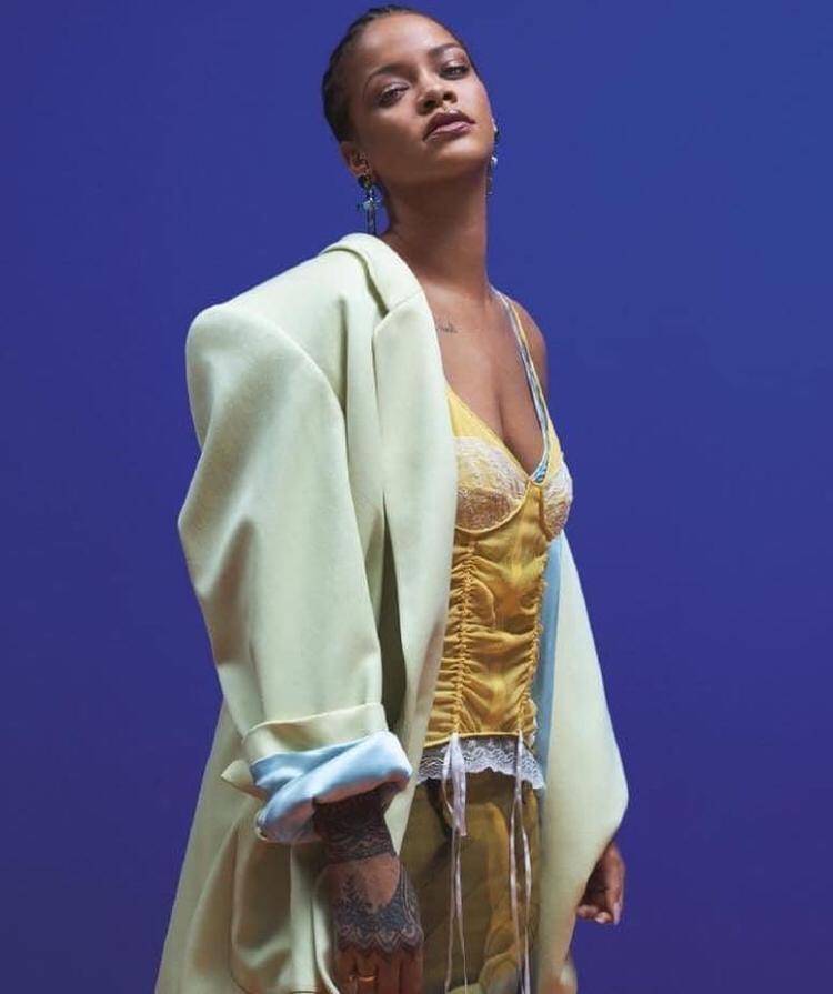 While fans wait with feverish anticipation for signs of new music, Ms. Fenty poses it up for the striking shoot which arrives a week after the debut of ‘Guava Island’ – the short film she starred in opposite Donald Glover.