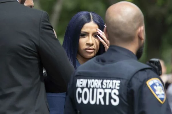 Donning blue hair and a navy pantsuit, the rapstress – fresh from a historic win at the BET Awards (click here to read) – took to a New York court on Tuesday (June 25) to officially render her plea.
